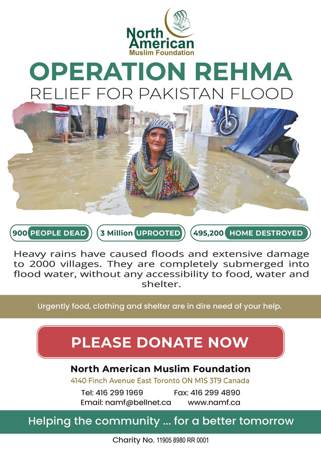 North American Muslim Foundation is focused on providing humanitarian aid in times of crisis. NAMF aims to provide vulnerable people with life saving relief supplies and treatment, and has provided emergency aid to such countries as Pakistan, Haiti, Sri Lanka, Indonesia, Somalia and Syria. NAMF continues to be a leader in emergency support efforts around the world.